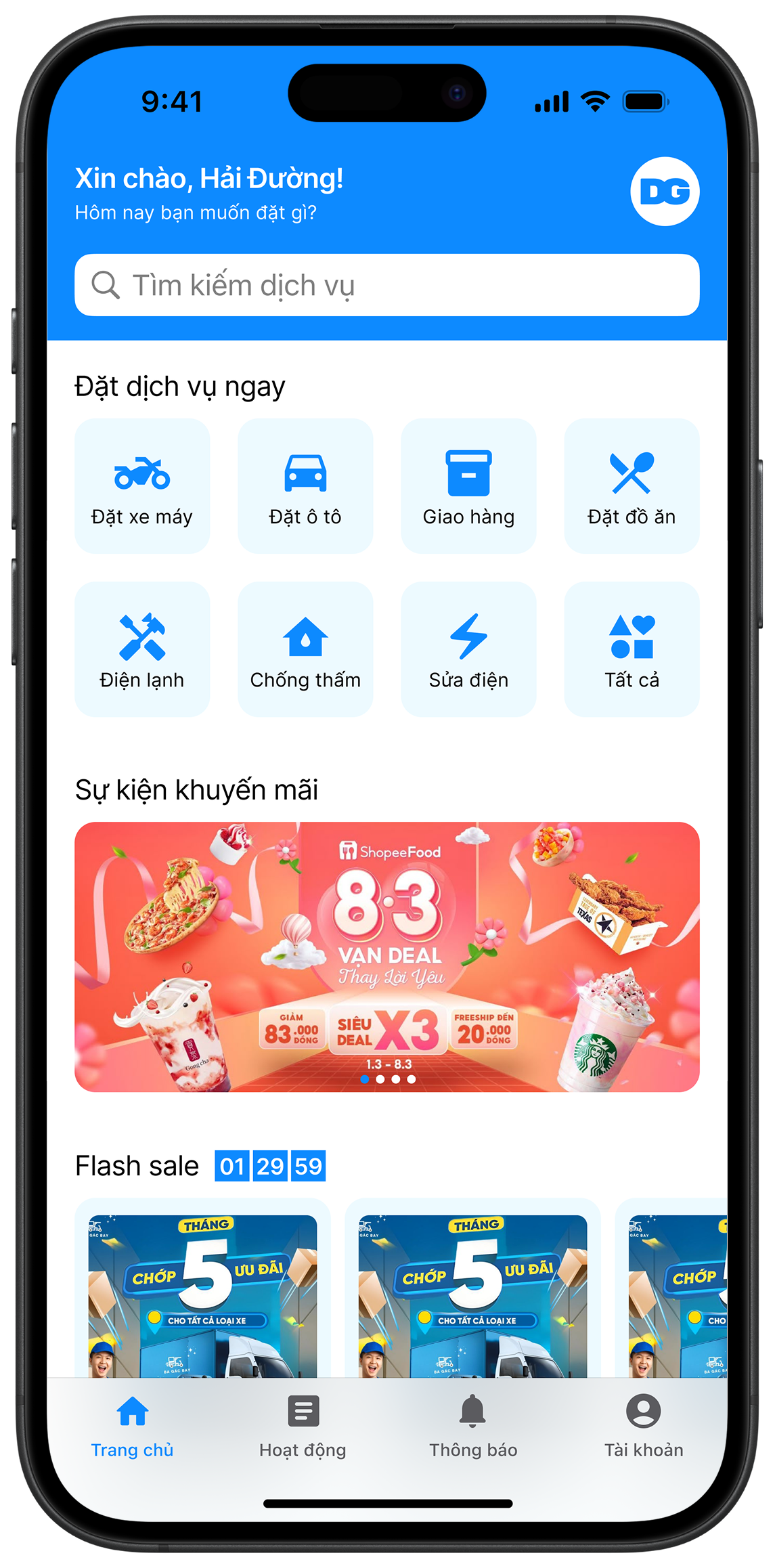 Designed core product flows including service discovery, booking, order tracking, and payment